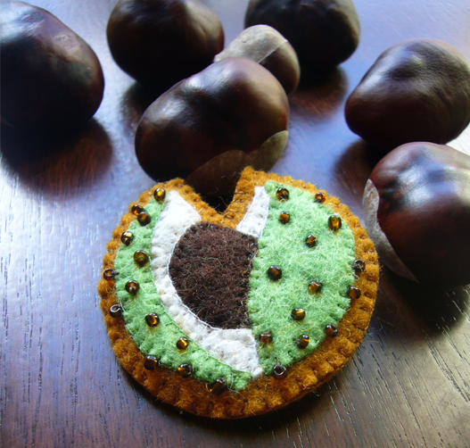 Felhasznált anyagok: gyapjúfilc, gomb, gyöngy, fém kitűző alap Méretek: ~4 cm