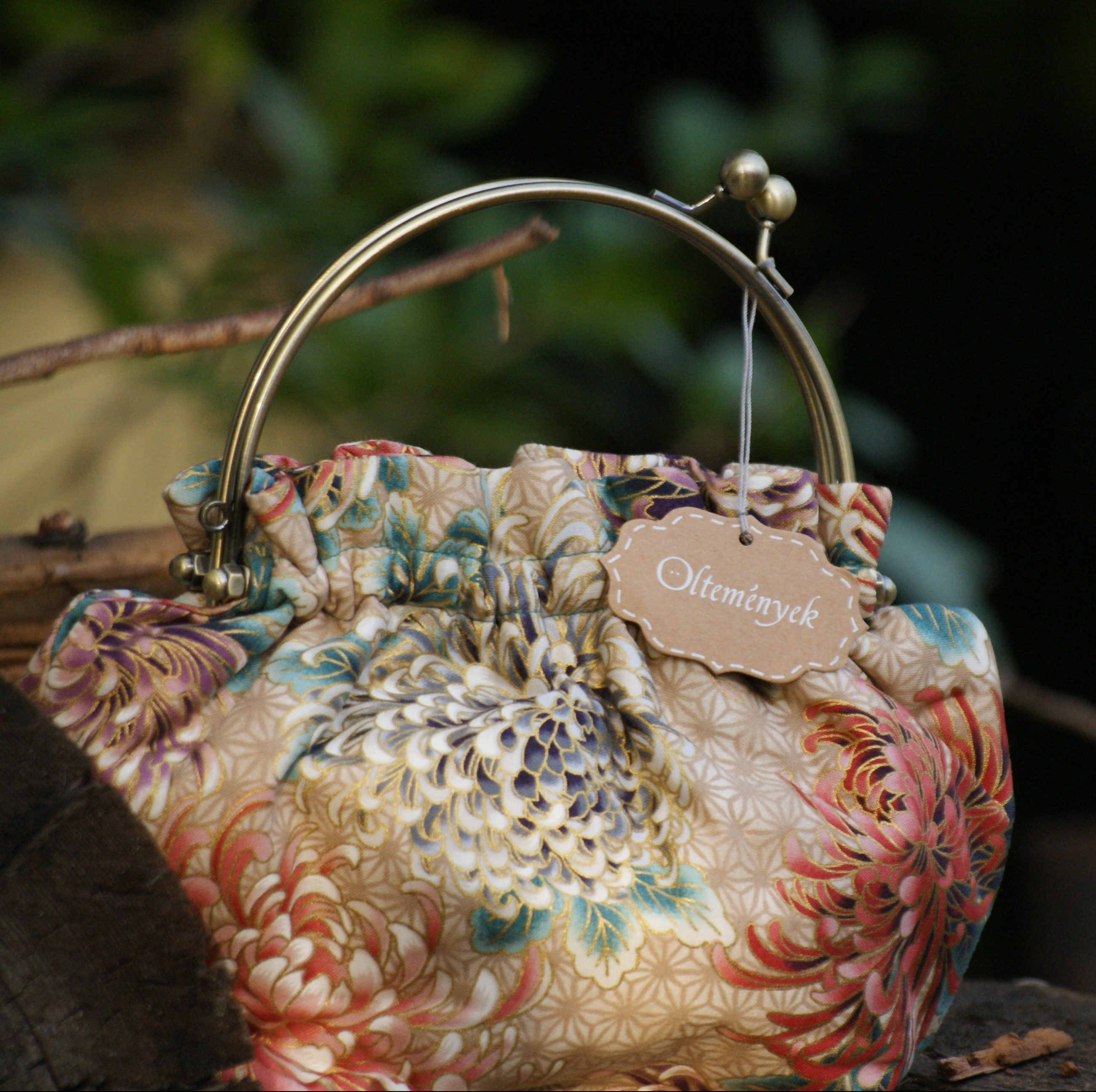 Felhasznált anyagok: nyomott mintás pamutvászon, antik bronz fémkeret